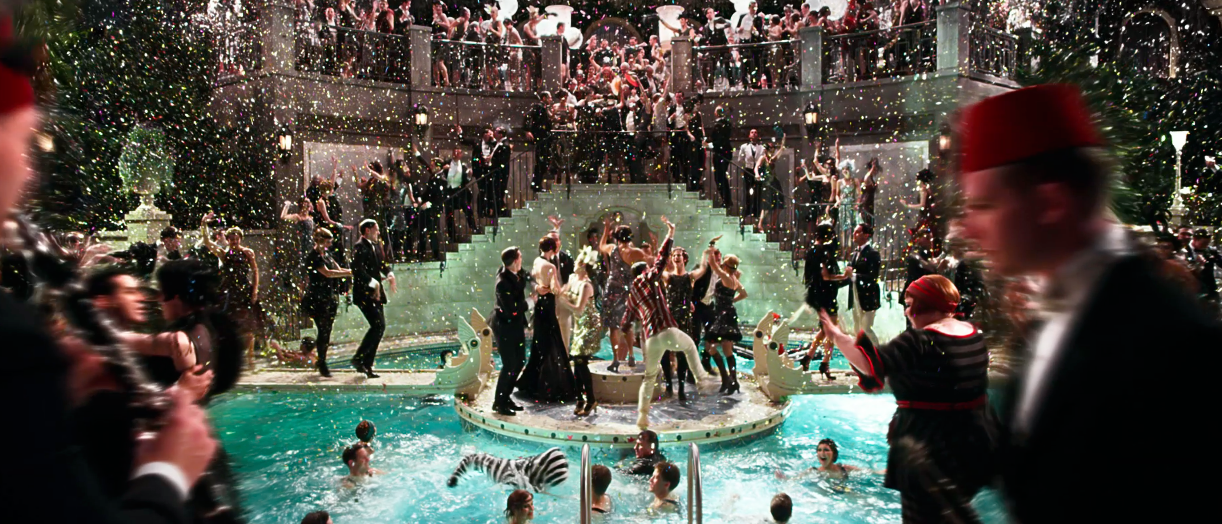 Quel che di solito fa da contorno ad una storia, qui si eleva dal suo ruolo di ornamento e si fa protagonista, chiave di lettura e fonte di intrattenimento; perché è la storia stessa di Jay Gatsby e del suo tentativo di ricongiungersi alla dolce Daisy che pretende di essere presentata su uno sfavillante banchetto di colori e sontuosità. Altrimenti, a nulla varrebbe lo sforzo di raccontare di un uomo che credeva che una buona dose di denaro potesse servire a procurargli amore e felicità, e che bastasse guadagnarsi una fortuna in qualunque modo per cancellare cinque anni di lontananza, mentre l’America degli anni ’20 inseguiva il suo sogno di ricchezza e prosperità, ignara del fatto che anche le più belle favole sono destinate a finire. Così come Gatsby non sapeva che, per quanti soldi potesse accumulare, non sarebbero mai bastati.